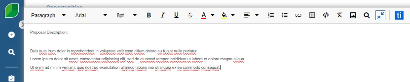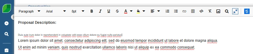 In the Aspire UI, under Opportunity, proposal descriptions, rich text editor the text size changes when I delete, or cut lines, or start new lines with the Enter key. Also, entire blocks of text are deleted when I select text, instead of the selected text.
